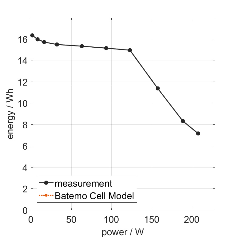 巴特莫测量了在25°C环境温度下,从100%充电状态用恒定电流0.45A (0.1C) 放电直到达到2.5V的C/10能量。热边界条件为自然对流。