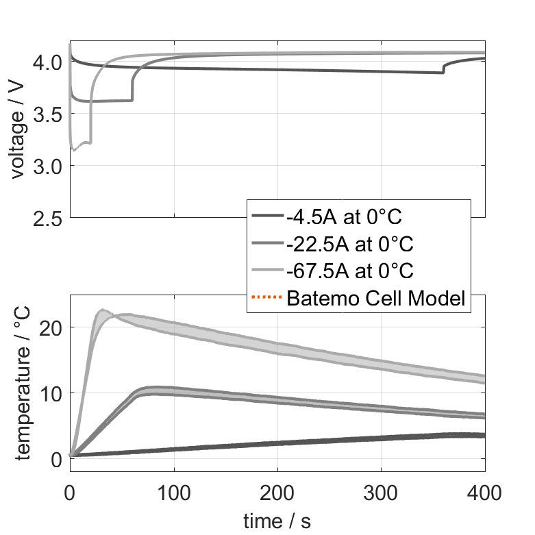 锂离子 Enpower Greentech Swift21700-45D 电池的 Batemo 电池模型是一个高精度的物理电池模型,具有全局有效性。作为一个数字孪生模型,它可通过模拟将您的决策无缝集成到您的研究、开发和电池分析中。有关巴特莫电池模型的特性和功能的详细信息,请参见 详情。Batemo 通过比较以下范围内的电池模拟和测量数据,证明了 Batemo 电池模型的准确性和有效性。验证范围广泛,实验特征涵盖电池的整个运行区域: 在低温和高温、最大电流和整个充电状态范围内。