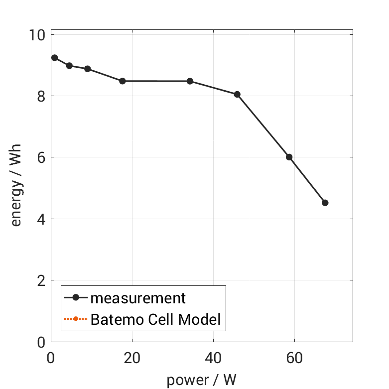 巴特莫测量了在25°C环境温度下,从100%充电状态用恒定电流0.25A (0.1C) 放电直到达到2.5V的C/10能量。热边界条件为自然对流。