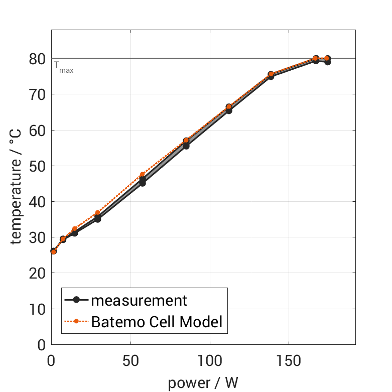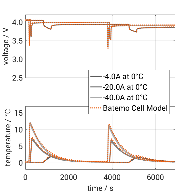 Batemo demonstrates the accuracy and validity of the Batemo Cell Model by comparing battery simulation and measurement data in the range given below. Validation is extensive, experimental characterization covers the total operational area of the cell: At low and high temperatures, up to the maximal current and in the whole state of charge range.