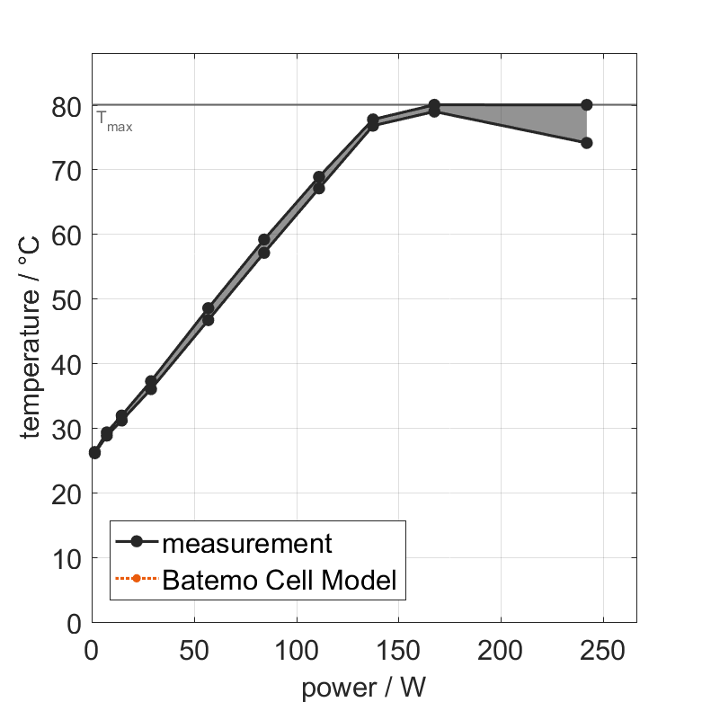 | Temperature Range definitionclose The temperature range are the thermal limits as used in the Batemo battery laboratory. Please see the BAK Battery INR2170-40D data sheet for the precise definition of the temperature safe area of operation of the cell. |