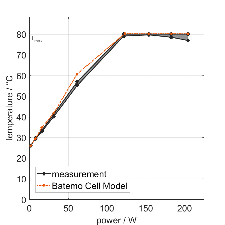 Batemo demonstrates the accuracy and validity of the Batemo Cell Model by comparing battery simulation and measurement data in the range given below. Validation is extensive, experimental characterization covers the total operational area of the cell: At low and high temperatures, up to the maximal current and in the whole state of charge range.