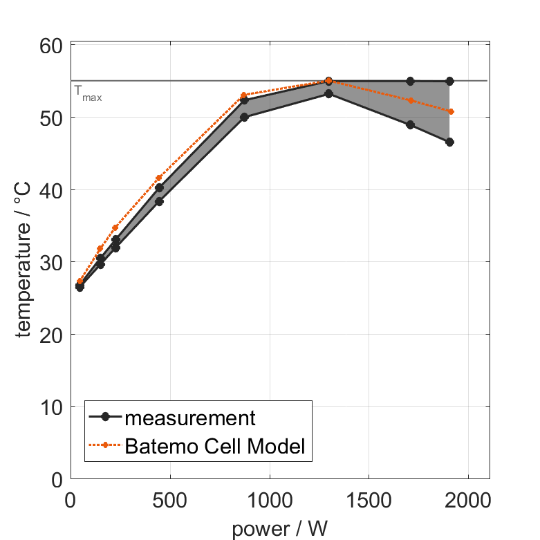Batemo demonstrates the accuracy and validity of the Batemo Cell Model by comparing battery simulation and measurement data in the range given below. Validation is extensive, experimental characterization covers the total operational area of the cell: At low and high temperatures, up to the maximal current and in the whole state of charge range.