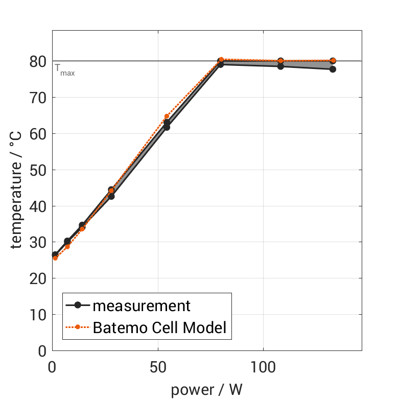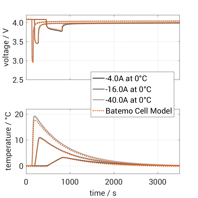 Batemo demonstrates the accuracy and validity of the Batemo Cell Model by comparing battery simulation and measurement data in the range given below. Validation is extensive, experimental characterization covers the total operational area of the cell: At low and high temperatures, up to the maximal current and in the whole state of charge range.