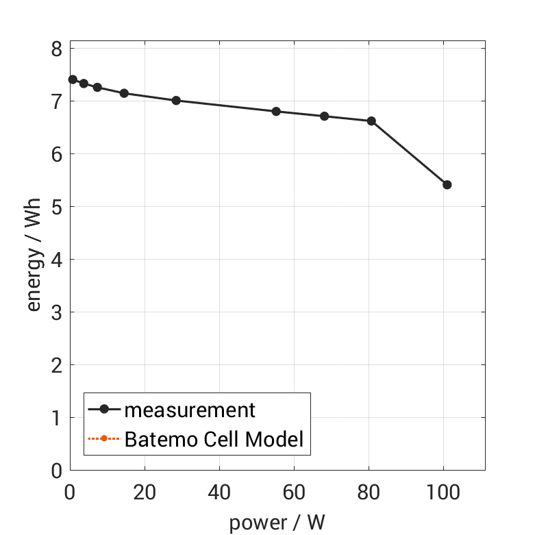 Moreover, the Batemo Cell Model validation will be fully transparent. The Batemo Cell Data contains the raw measurement and simulation data. For all experiments the voltage, temperature, power and energy accuracies are calculated. This allows straight-forward evaluation and analysis of the Batemo Cell Model validity. The graphs show a selection of characteristic data of the cell Samsung INR18650-20S(3) to evaluate the cell performance. The prediction of the Batemo Cell Model is included as soon as the Batemo Cell Model is finished.
