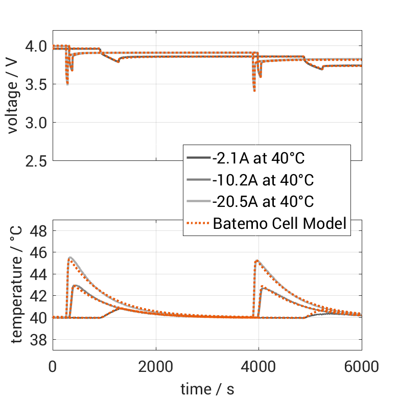 Batemo demonstrates the accuracy and validity of the Batemo Cell Model by comparing battery simulation and measurement data in the range given below. Validation is extensive, experimental characterization covers the total operational area of the cell: At low and high temperatures, up to the maximal current and in the whole state of charge range.