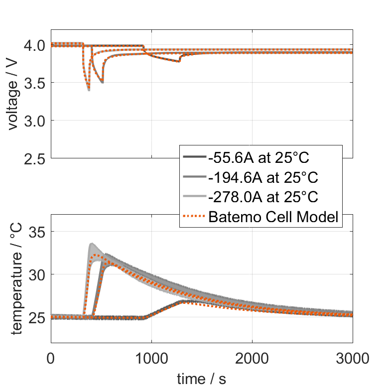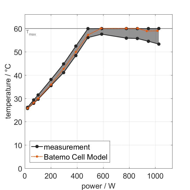 Batemo demonstrates the accuracy and validity of the Batemo Cell Model by comparing battery simulation and measurement data in the range given below. Validation is extensive, experimental characterization covers the total operational area of the cell: At low and high temperatures, up to the maximal current and in the whole state of charge range.