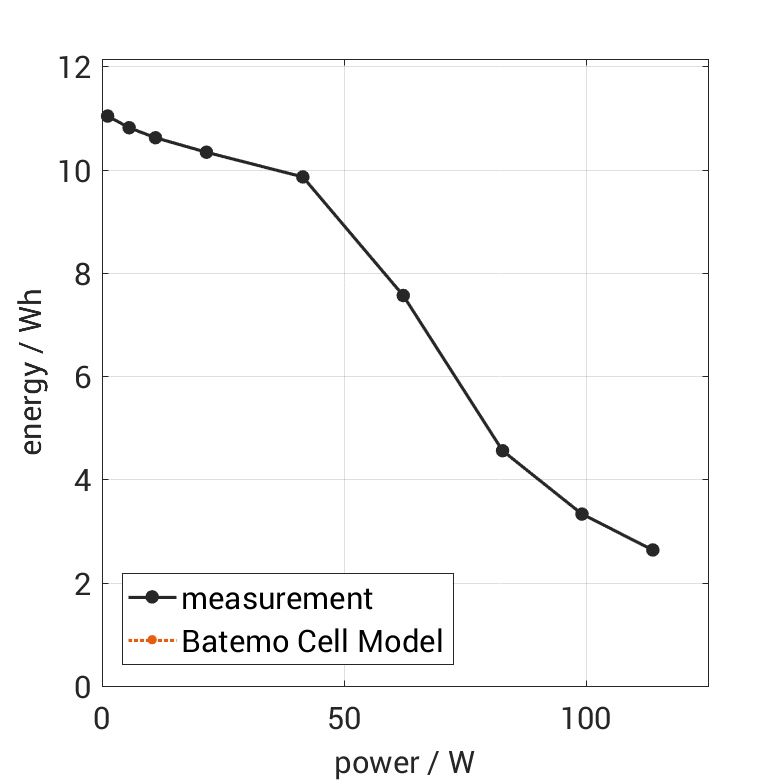 Batemo measured the C/10 energy by discharging the cell at an ambient temperature of 25°C from 100% with a constant current of 0.31A (0.1C) until reaching the voltage of 2.5V. The thermal boundary condition is free convection. |