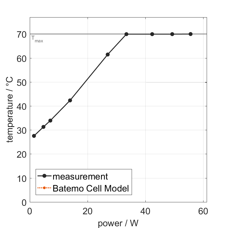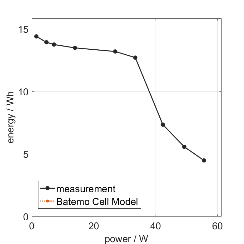 Moreover, the Batemo Cell Model validation will be fully transparent. The Batemo Cell Data contains the raw measurement and simulation data. For all experiments the voltage, temperature, power and energy accuracies are calculated. This allows straight-forward evaluation and analysis of the Batemo Cell Model validity. The graphs show a selection of characteristic data of the cell TerraE INR18650-42E to evaluate the cell performance. The prediction of the Batemo Cell Model is included as soon as the Batemo Cell Model is finished.
