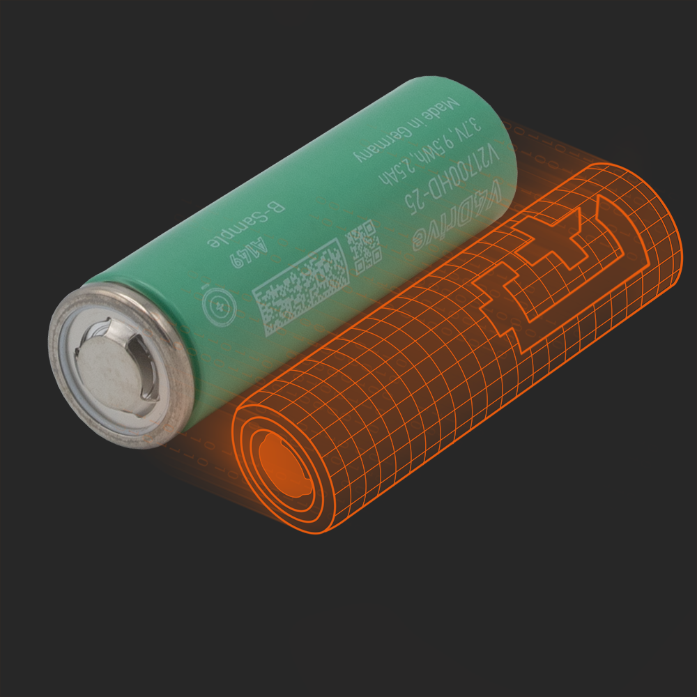 The Batemo Cell Model of the lithium-ion battery cell VARTA V4Drive V21700HD-25(B) is a high-precision, physical cell model with global validity. As a digital twin it seamlessly integrates into your research, development and battery analytics by basing your decisions on simulations. See the details to learn more about the features and capabilities of the Batemo Cell Model.