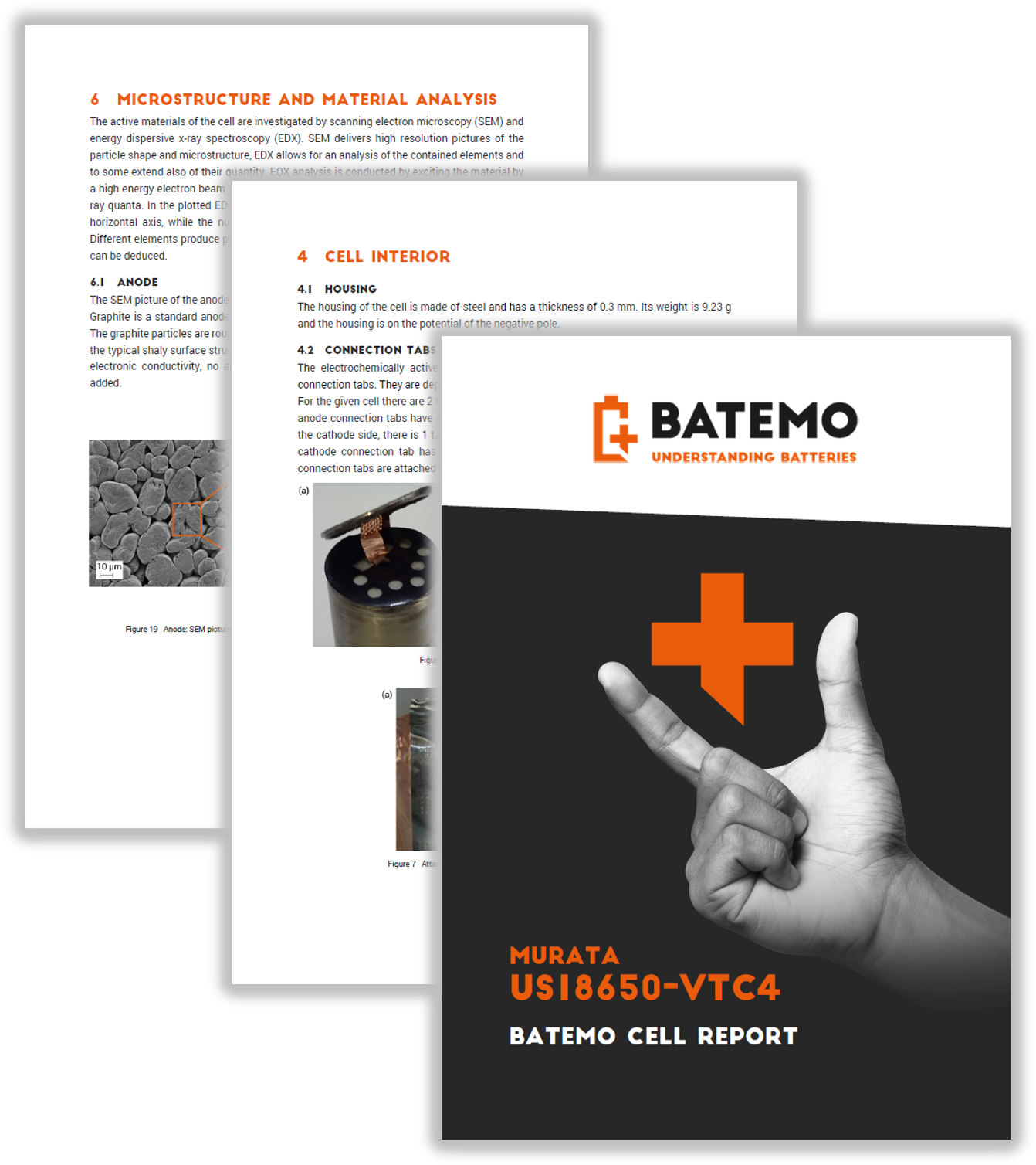 In battery system development it is crucial that you really know the cells that you work with. This includes not only the cell performance but also the cells technology like internal cell construction, safety features, used materials and chemistry. This requires opening and looking inside the cells. Unfortunately, opening cells is challenging, potentially dangerous and an environmental hazard. It requires proper equipment, handling and experience. The good news: We take care of that. The Batemo Cell Report is a detailed tear down report that contains pictures, sketches and content about the important aspects of the cell. Check the Batemo Cell Explorer for off the shelf available Batemo Cell Reports.